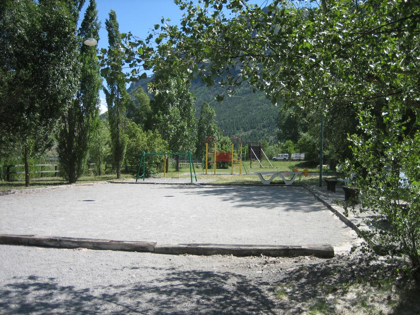 Terrain de boules à l'intérieur du camping . Accès gratuit